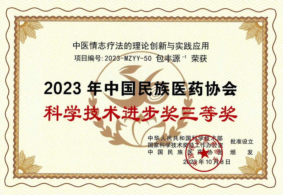 2023年,该成果再获中国民族医药协会2023年度科学技术进步三等奖(此奖项由国家科技部国家科学技术奖励办公室批准设立)。